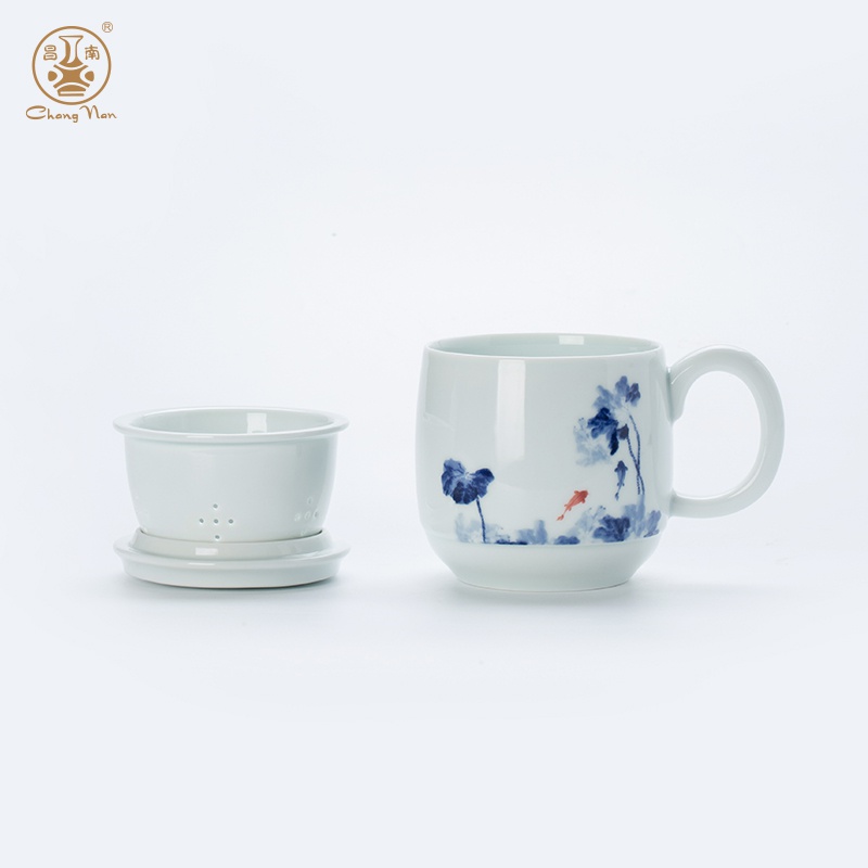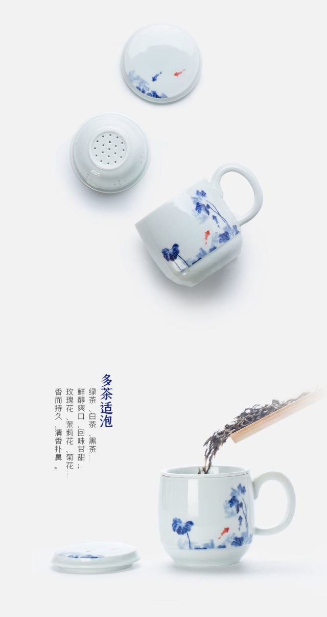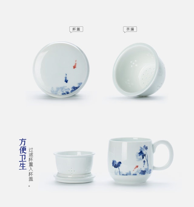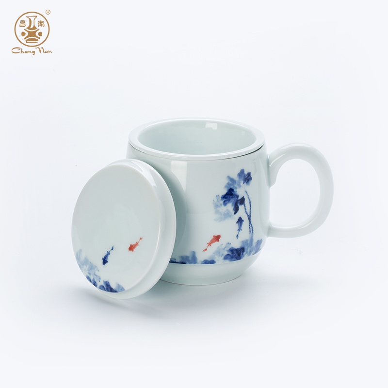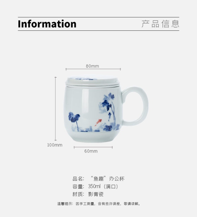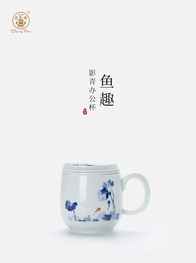 影青“魚趣”辦公杯