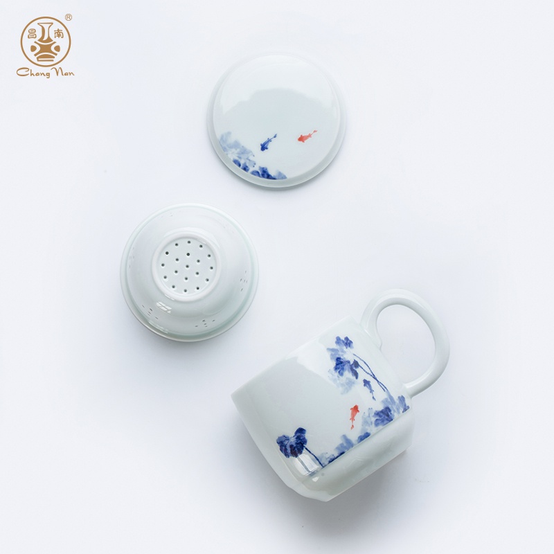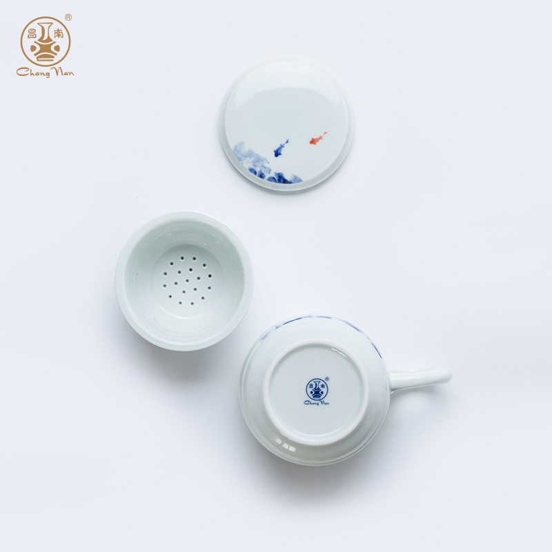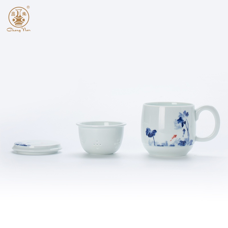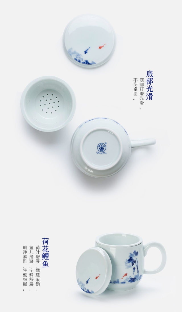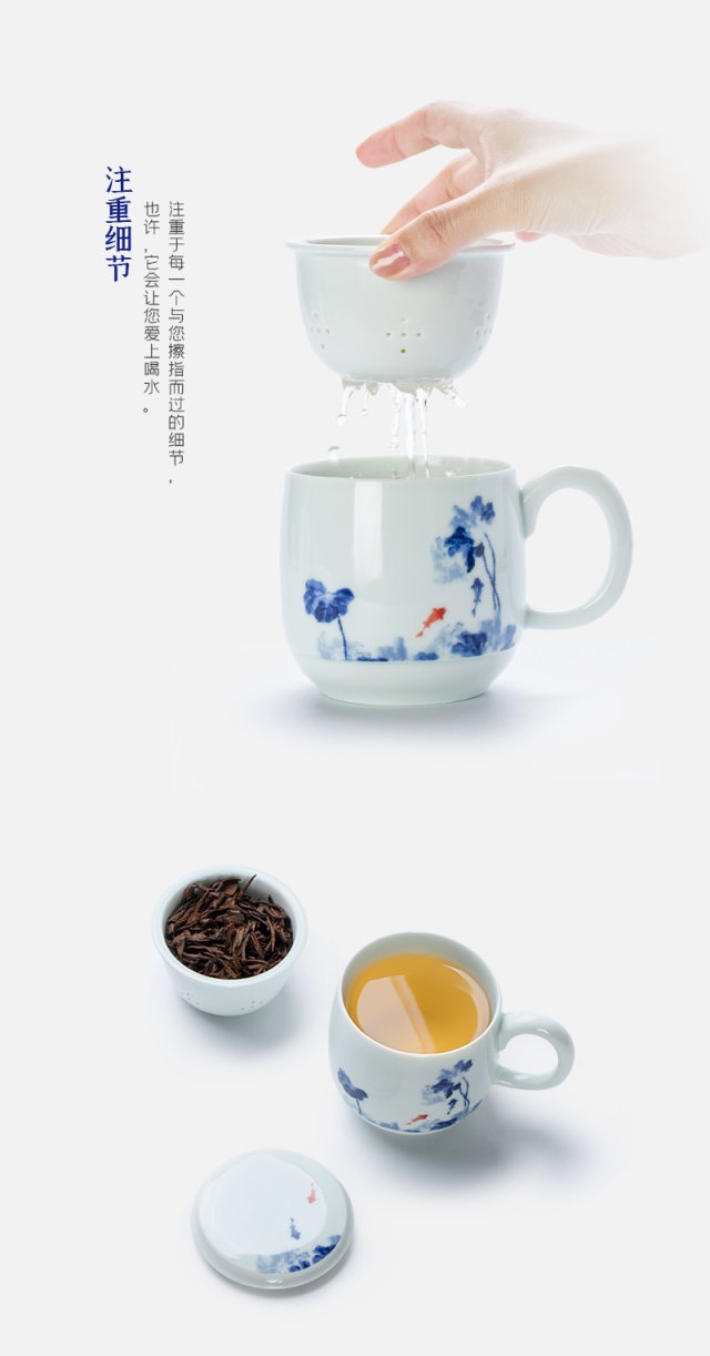 影青“魚趣”辦公杯